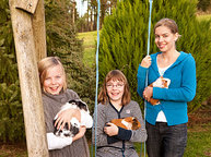 Außer rund 40 Kaninchen und ein paar Meerschweinchen tummeln sich einige Katzen und eine kleine Schar Ziegen auf unserem Hof. Sie alle stehen unter dem Protektorat unserer Kinder. Mit unseren drei Töchtern wächst übrigens schon die mindestens sechste Generation Geier hier am Hof heran. Und eigentlich ist es ja ein gutes Zeichen, wenn sich sie sich schon jetzt so für Tiere interessieren; vielleicht übernimmt eines der Mädels den Hof eines Tages?